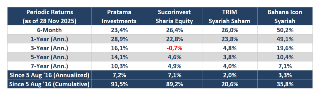 Return Performance vs Top 3 Sharia Equity Mutual Funds*