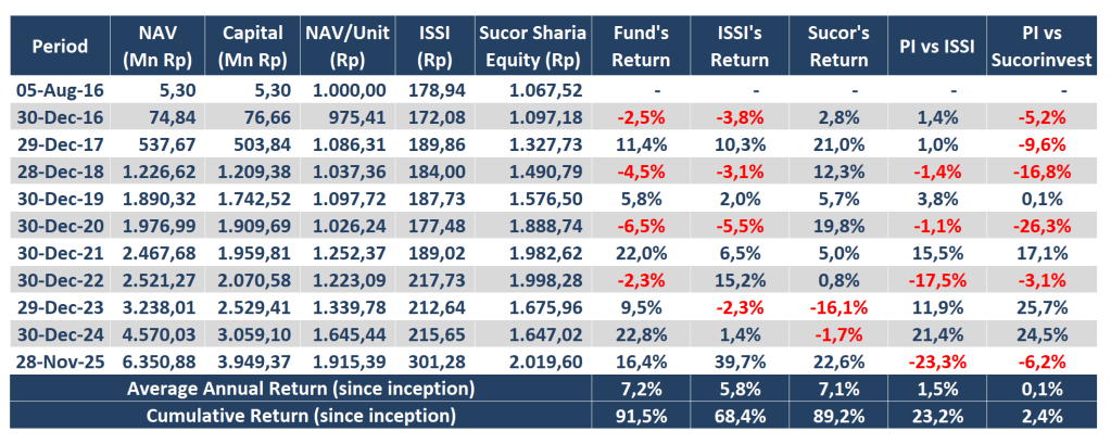 Currently, we only invest in Indonesian public listed companies included in Indonesia Sharia Stock Index (ISSI). We use ISSI as a benchmark for our relative performance measurement purpose.