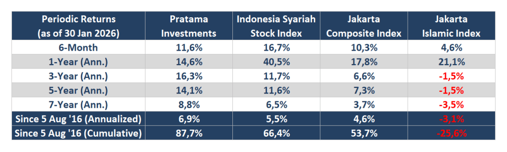 Currently, we only invest in Indonesian public listed companies included in Indonesia Sharia Stock Index (ISSI). We use ISSI as a benchmark for our relative performance measurement purpose.