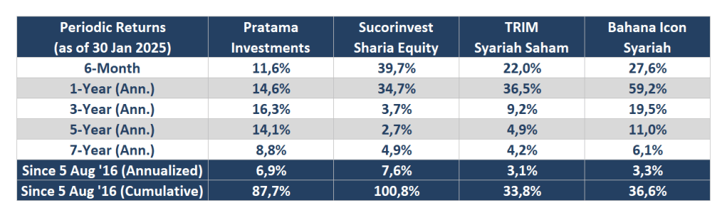 Return Performance vs Top 3 Sharia Equity Mutual Funds*