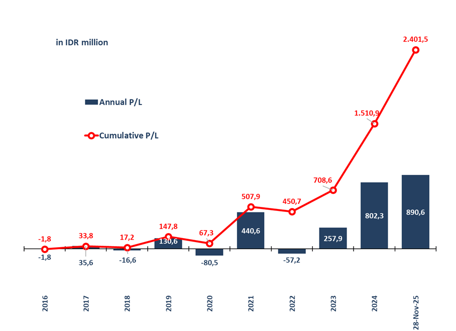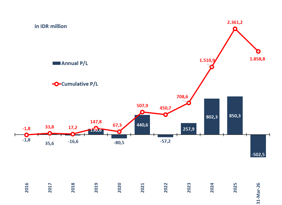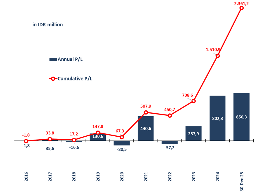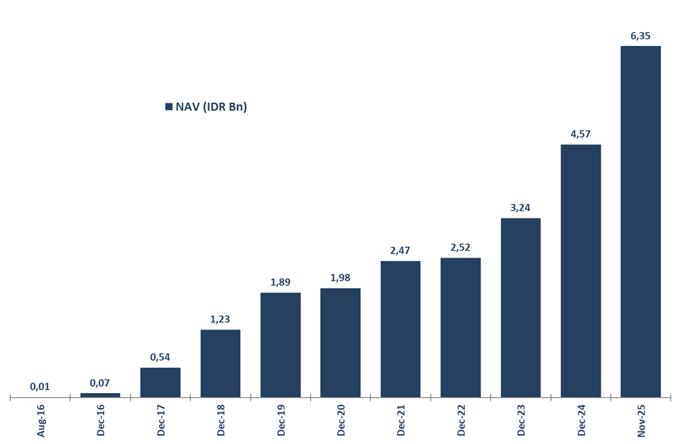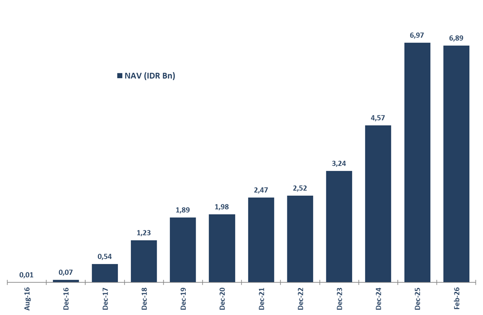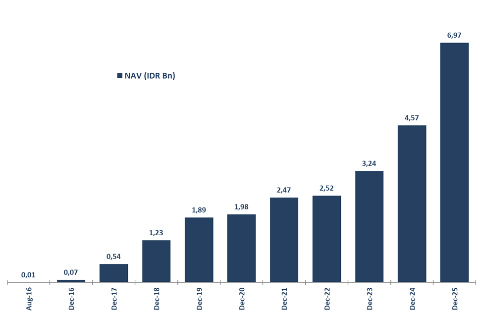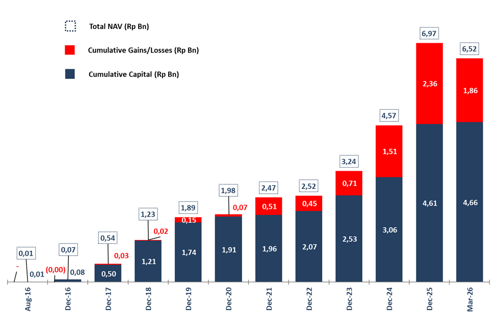 Investment performance is calculated starting from inception date on 5 August 2016 and based on the change in Net Asset Value (NAV) per Unit. Net asset value (NAV) is the value of an entity’s assets minus the value of its liabilities as known in open-end mutual funds. NAV per unit when the partnership was started is Rp 1,000.00 per unit.