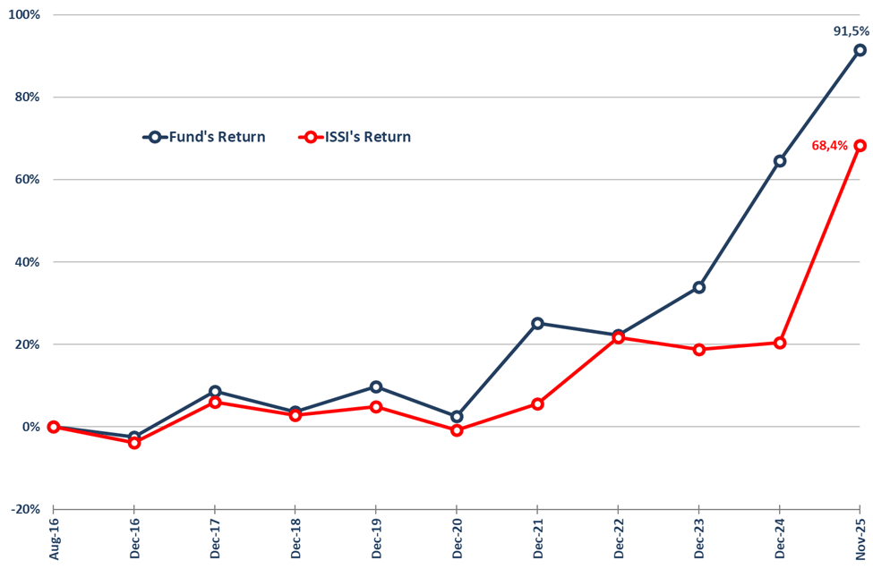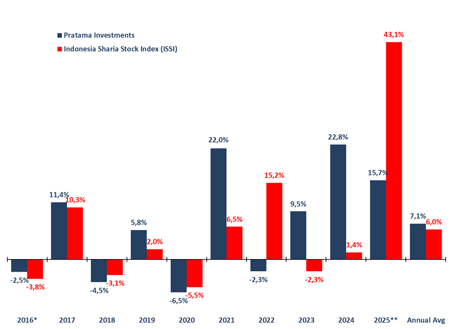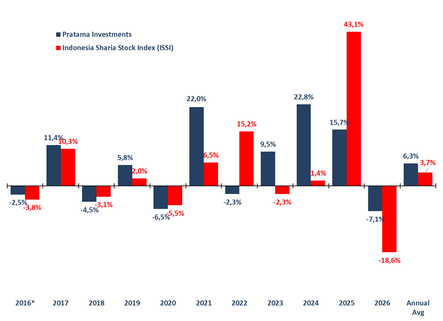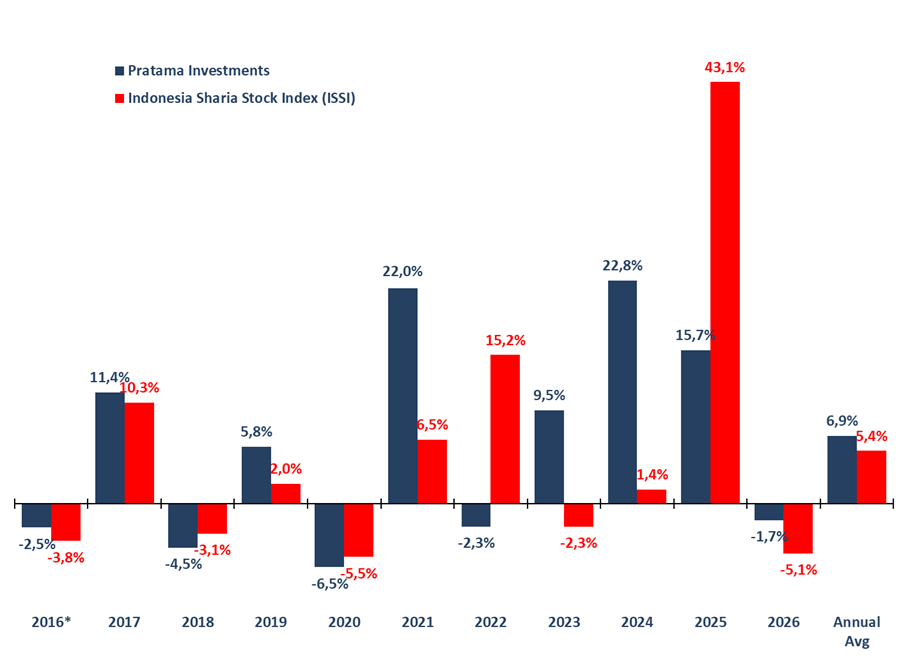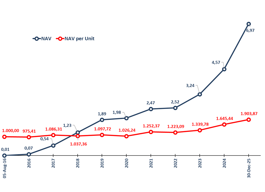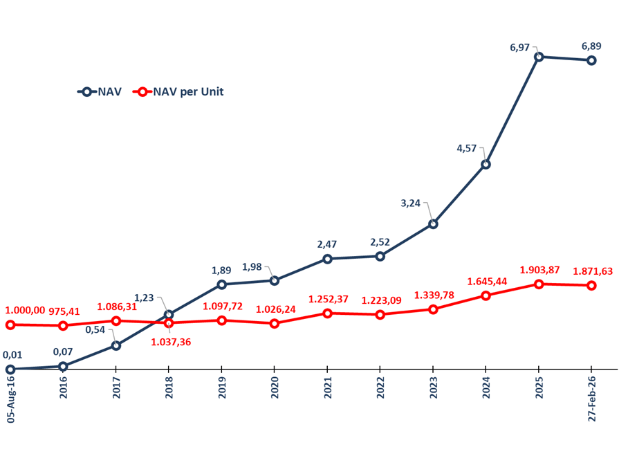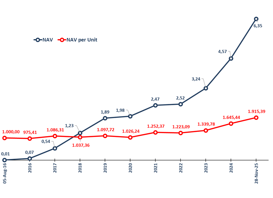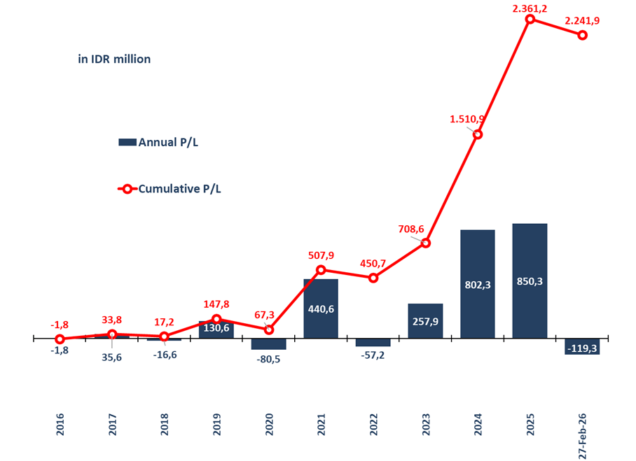 Investment performance is calculated starting from inception date on 5 August 2016 and based on the change in Net Asset Value (NAV) per Unit. Net asset value (NAV) is the value of an entity’s assets minus the value of its liabilities as known in open-end mutual funds. NAV per unit when the partnership was started is Rp 1,000.00 per unit.